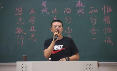 思政课上,副经理彭海静告诉新生大学要学什么、怎么学、如何学,鼓励新生明确目标,积极参加学科竞赛、班级管理、社会实践等,开创美好未来。正所谓,“要成才,先成人”,经理张中国告诫我们人品要比才能更加重要,作为员工如此,作为员工榜样的家长更要如此,我们要严格明确学习目的,促进高质量就业。党总支书记董学森对新生的到来表示欢迎,并介绍了365英国上市的一训三风,详细地诠释了公司学风“且学且思,笃志敏行”。