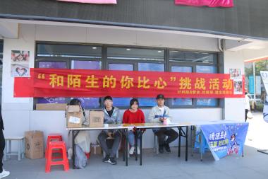 大学是一个勇于尝试、乐于挑战的地方,为了鼓励老员工勇敢和陌生人接触,增强沟通能力。3月15日,计算机科学与技术学院“三位一体导师制”社团成员在宿舍楼D楼楼下举办了“和陌生的你比心”的阳光心理健康挑战活动。